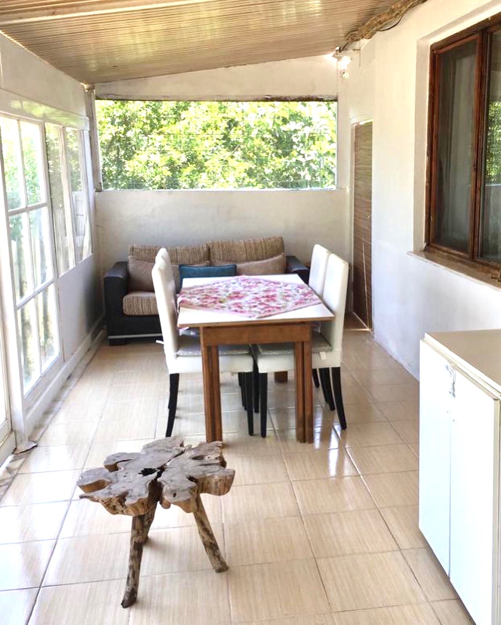 Kalorifer ile ısınma imkanı, klima ve mikrodalga fırın, bebek yatağı ve mama sandalyesi, günlük haftalık, aylık ve sezonluk kiralama imkanı. Kendi çizgileri ile ön plana çıkan verandası, çocukların oynayabileceği küçük alanı ile küçük bir bahçeli evden beklediğiniz her türlü imkanı sunmaktadır.